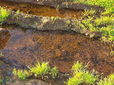 We put a child's pool... our tadpole pond... in the shade of the back yard and filled it with creek water.